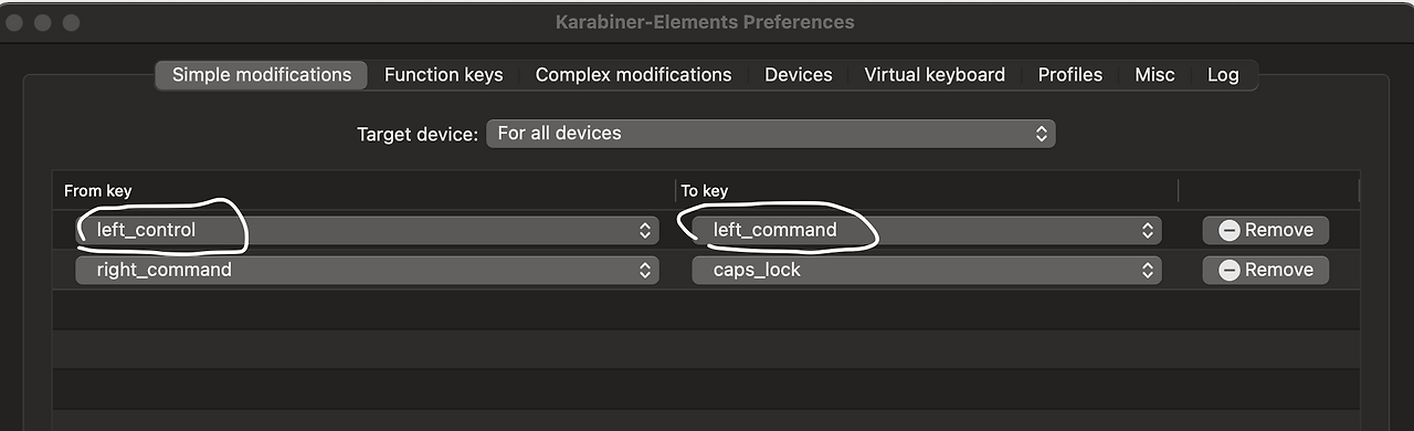 Karabiner-elements 프로그램을 이용해서 자주 쓰는 왼쪽 control 버튼을 command 키로 매핑을 했는데