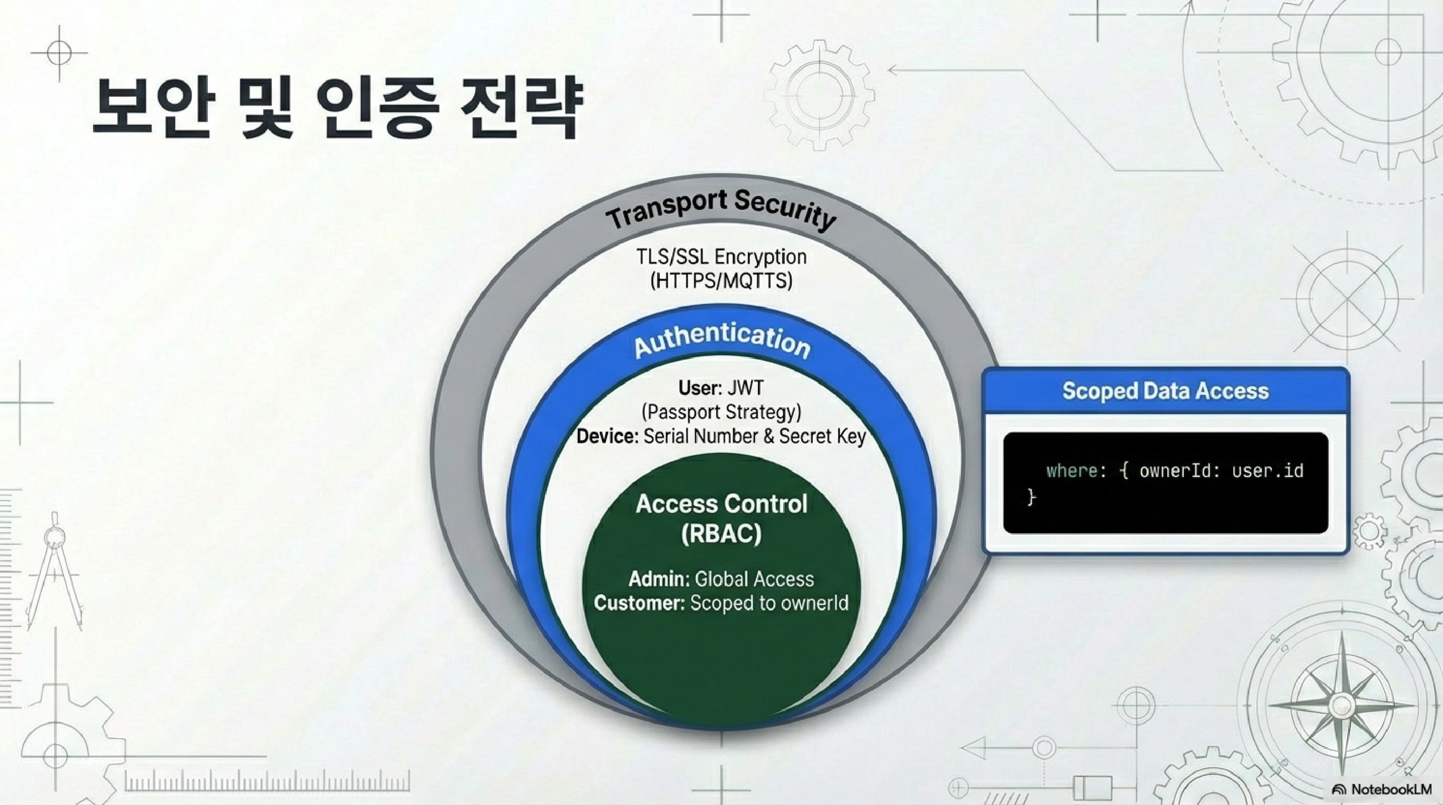 - 멀티 테넌시 고려: 관리자는 전체 고객을 보고, 사용자는 본인의 발전기만 보이도록 권한 설계.