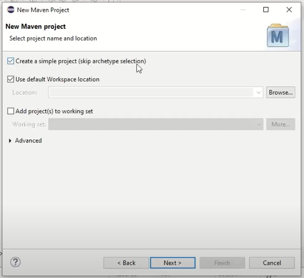 - Maven > Maven Project를 선택하고 Next를 클릭합니다.