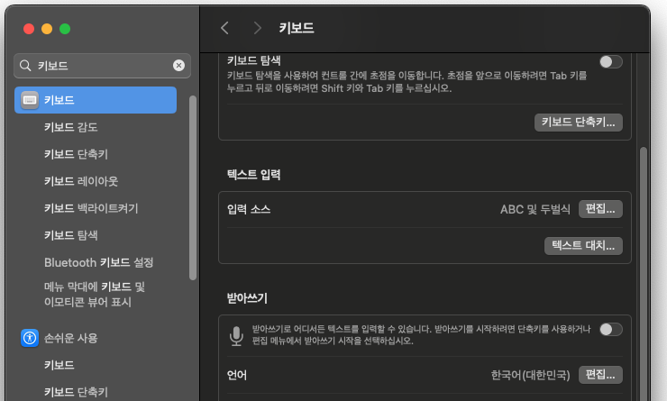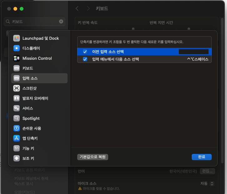 시스템설정 > 키보드단축키 > 입력소스