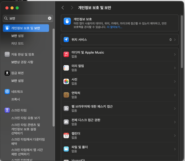 * 프로그램 설치 후 '시스템 환경설정 > 개인정보 보호 및 보안'에서 프로그램 승인을 해야 합니다. 승인 하지 않으면 작동하지 않으니 참고 바랍니다.