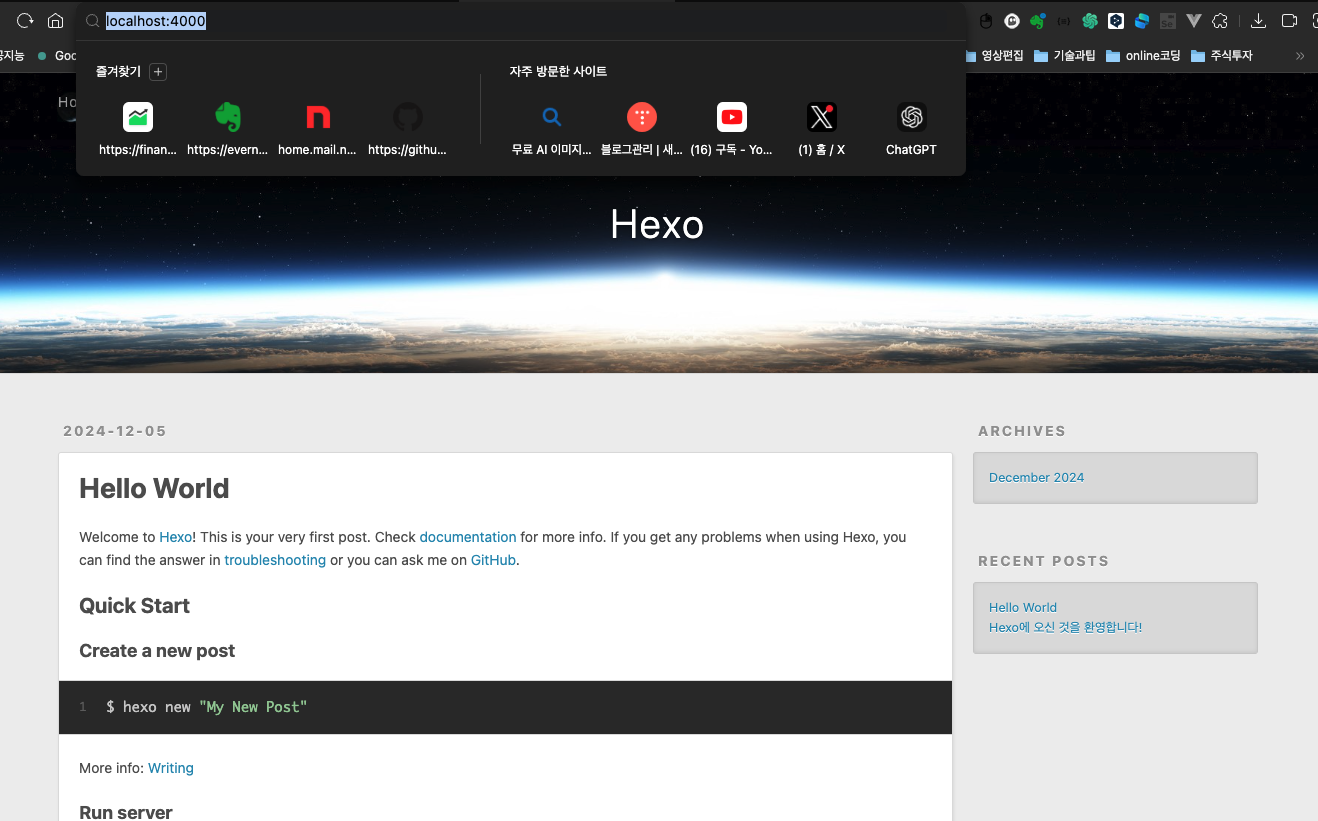Hexo는 간단하고 빠른 블로그 엔진으로, 주로 Markdown 형식의 글을 작성하여 정적인 HTML 파일로 변환해주는 시스템입니다. Hexo는 Node.js 기반으로 작동하며, 블로그를 운영하는 방식은 다음과 같습