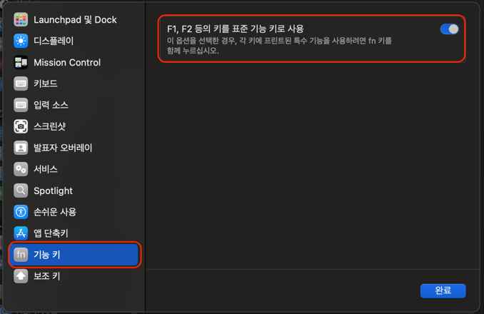 [MacOS] fn키 누르지 않고 F1 ~ F12 사용하는 방법