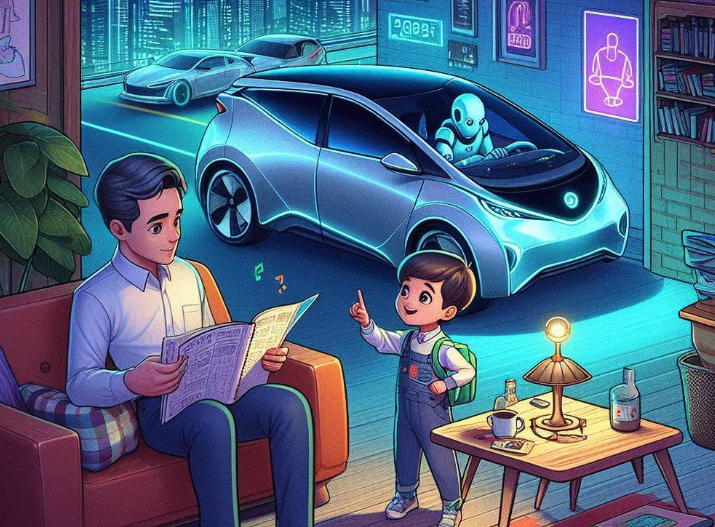 2050년, 완전 자율주행 시대. 차는 모두 AI가 운전하며, 인간이 운전대를 잡는다는 건 먼 옛날 이야기로 전설처럼 내려오는 시대.등장인물:민수 (8살, 호기심 많은 아이)아빠 (40대 중반, 옛날 이야기를 좋아하는 낭만주의자)(장면: 거실. 민수가 학교에서 배운 "역사 속 교통수단" 숙제를 하다가 아빠에게 다가온다.)민수: 아빠! 아빠! 오늘 학교에서 신기한 거 배웠는데, 진짜야?아빠: (소파에 앉아서 뉴스 홀로그램을 보며) 응? 뭔데, 민수야? 또 선생님이 UFO 타고 다녔다고 그러셨나?민수: 아니, 그거보다 더 신기한 거! 옛날엔 사람들이 차를 직접 운전했다고 그러던데… 아빠 시절에도 그랬어요?아빠: (웃으며) 오호, 그거? 맞아, 아빠가 너만 할 때쯤엔 차에 운전대란 게 있었지. 사람들이 직접 ..